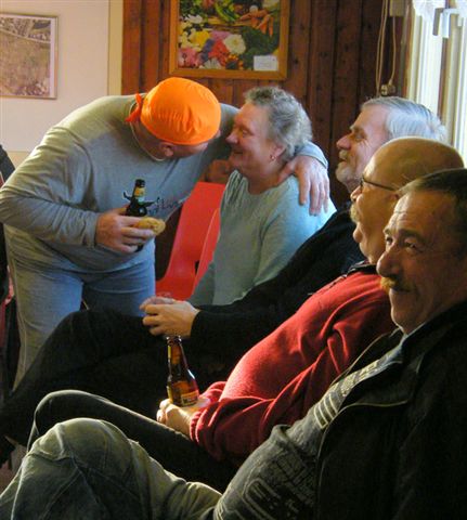 Het was veelal een staande receptie waar je de gezelligheid niet alleen voelen, maar ook eten (zoals appelflappen en oliebollen). Het duurde wel eventjes voordat het bij de bar drukker werd en daardoor kwam er gezeligheid in het tuinhuis. Hoe meer mensen op een klein plekje hoe warmer het namelijk wordt. Lastig was het wel voor brildragenden onder ons, dat aanslaan van de bril. Voor een nieuwjaarduik moest je bij Theo zijn (we zoeken er nog foto's van).