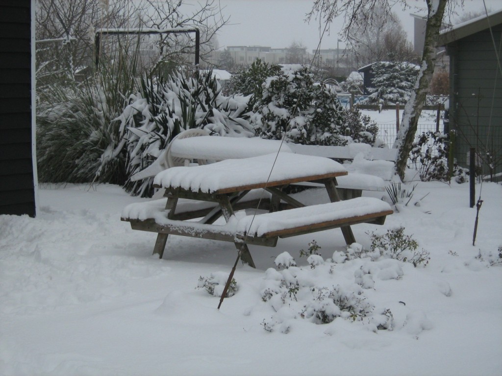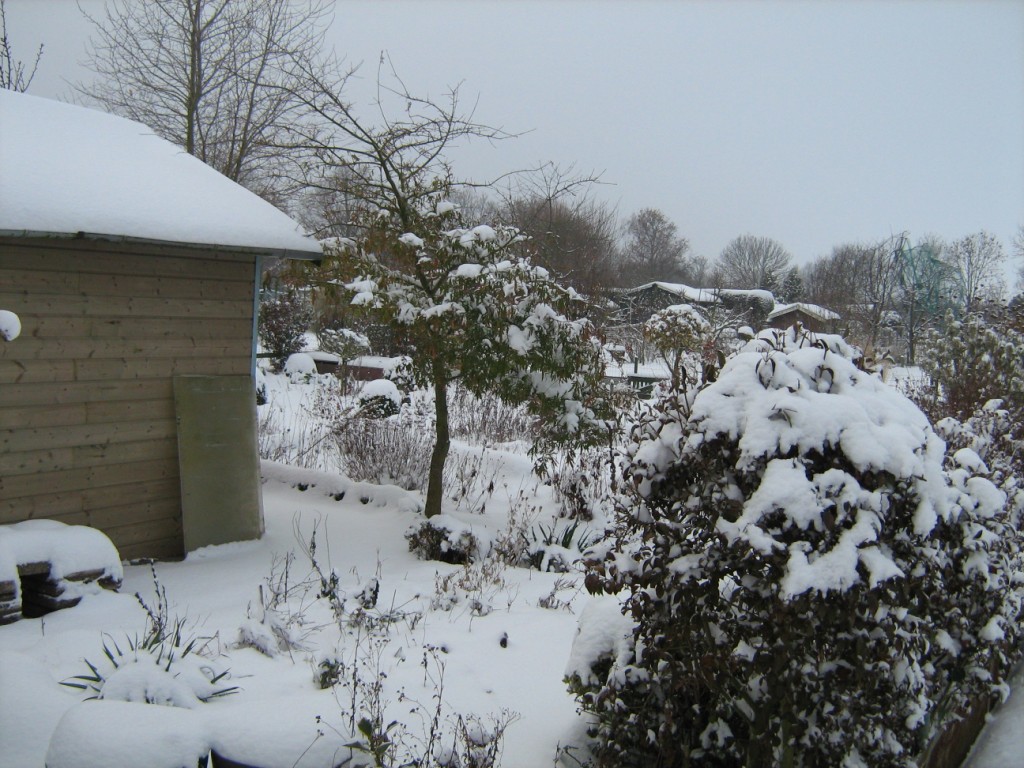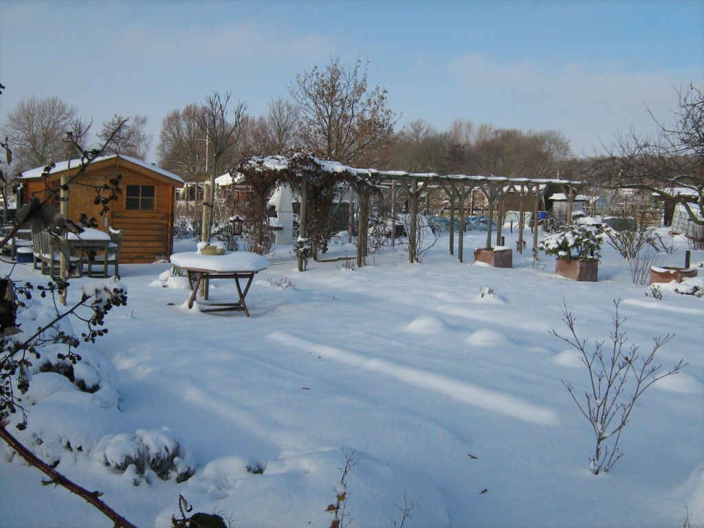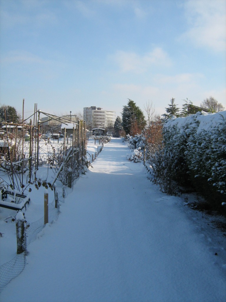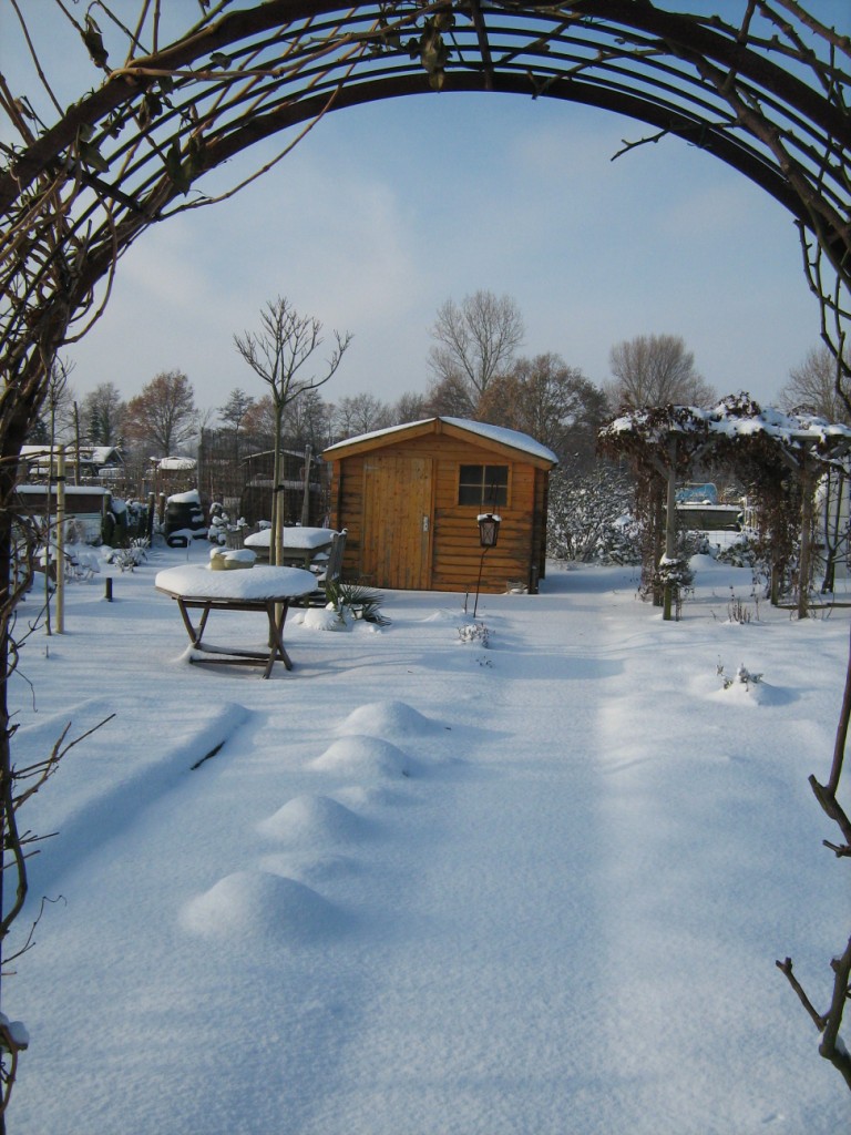 Op 18 december lag er een dik pak sneeuw op Levenslust. Het had behoorlijk gesneeuwd die nacht. Als eenzame fotograaf liep ik daar over het complex. Niemand te bekennen en dat op een zaterdag. Behalve dan wat voetsporen van een fazant of konijn waren er geen voetstappen te bekennen. Alleen in het tuinhuis zaten een aantal mensen nog na te borrelen om warm te blijven. Mooi witte plaatjes leverde het in ieder geval wel op.